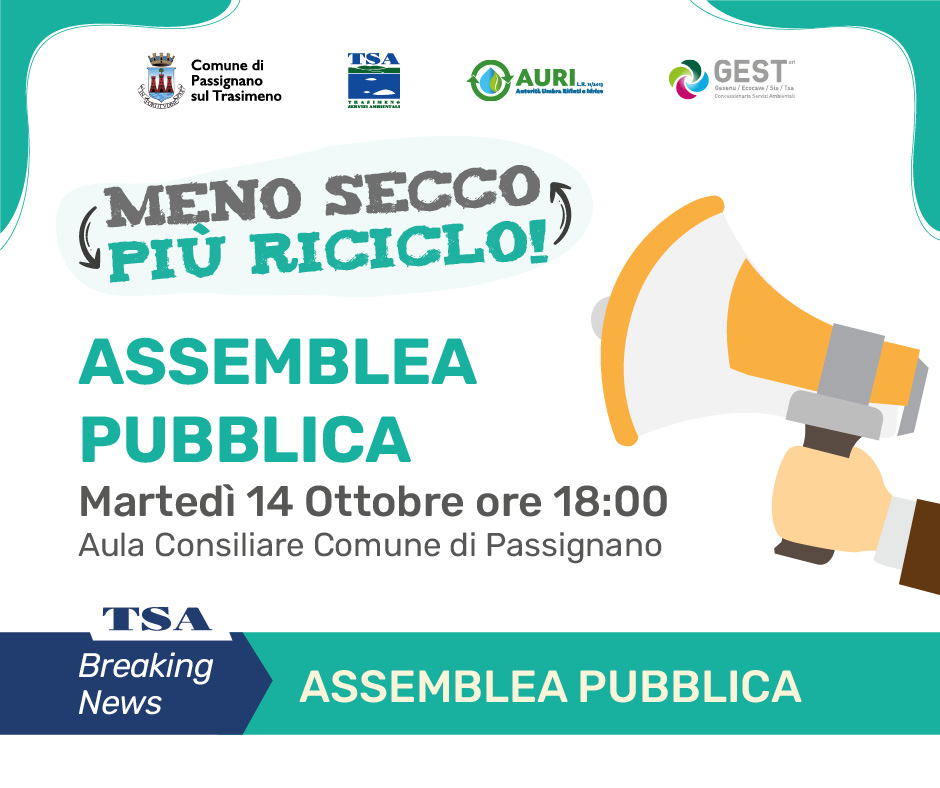 PASSIGNANO SUL TRASIMENO - CAMBIA LA RACCOLTA DEL SECCO: INCONTRO PUBBLICO IL 14 OTTOBRE 2025